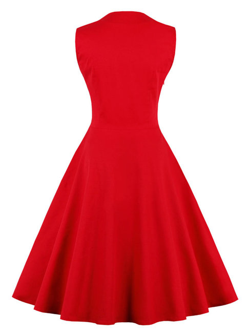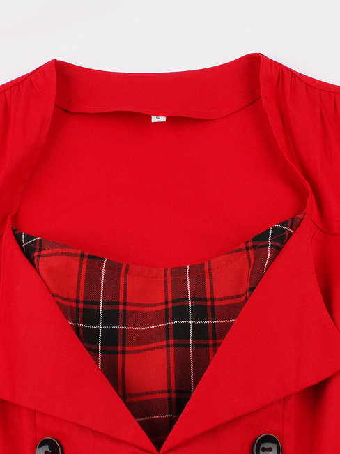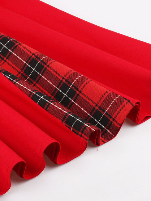 - Red A-line Plaid Patchwork Cotton Blends Midi Dresses (Style V200381)