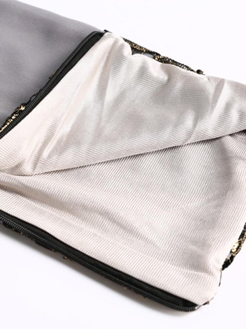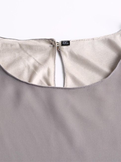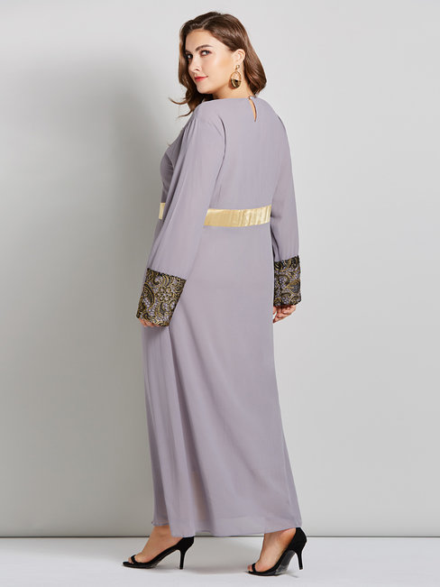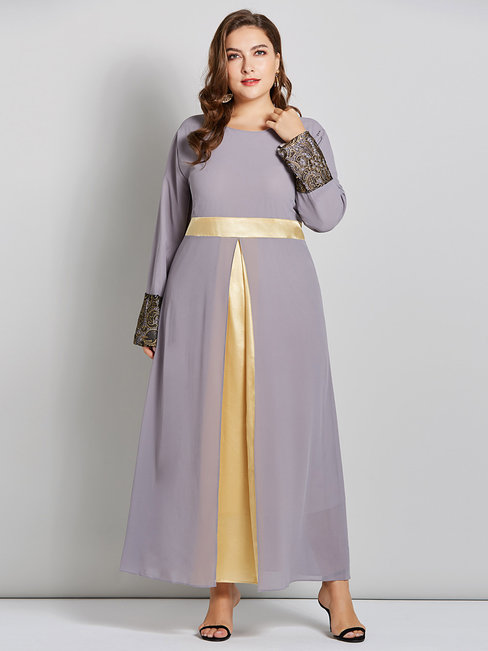 - Gray A-line Round Neck Plain Patchwork Chiffon Maxi Dresses (Style V200164)
