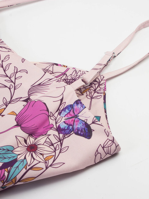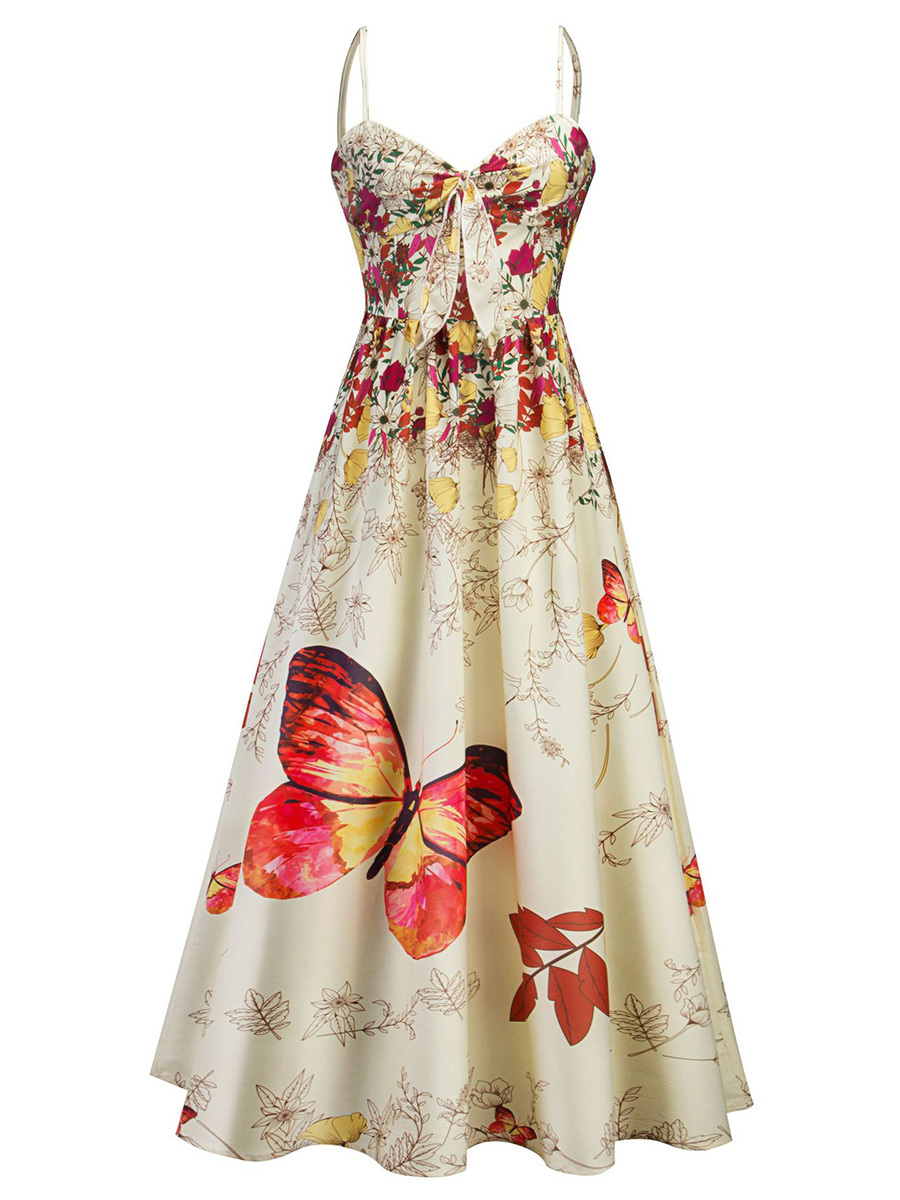 - Yellow A-line Spaghetti Strap Floral Backless Floral Dresses (Style V200488)