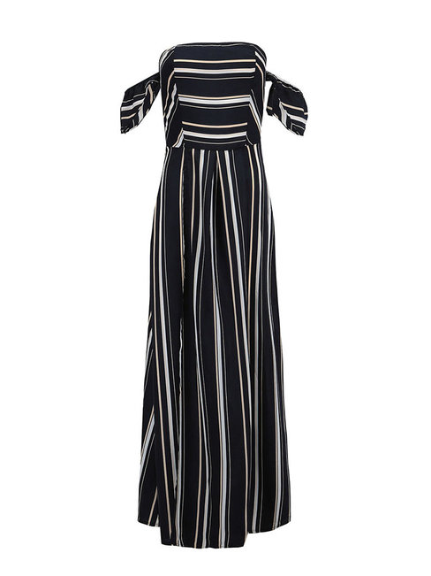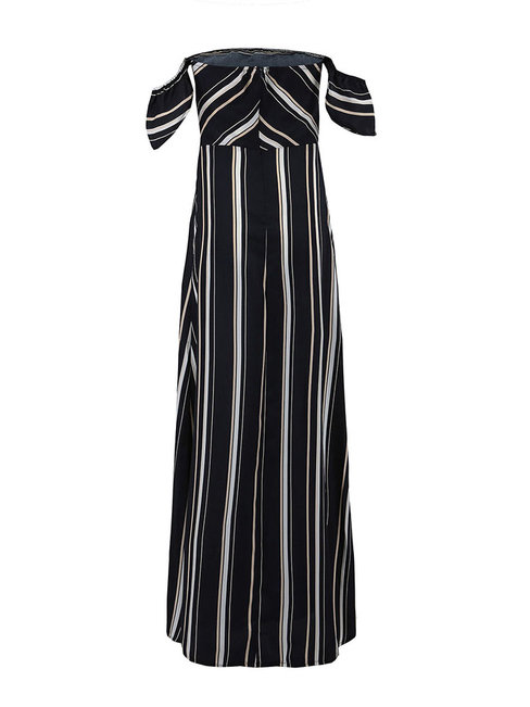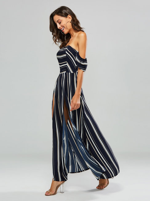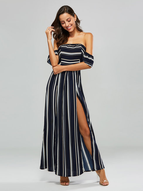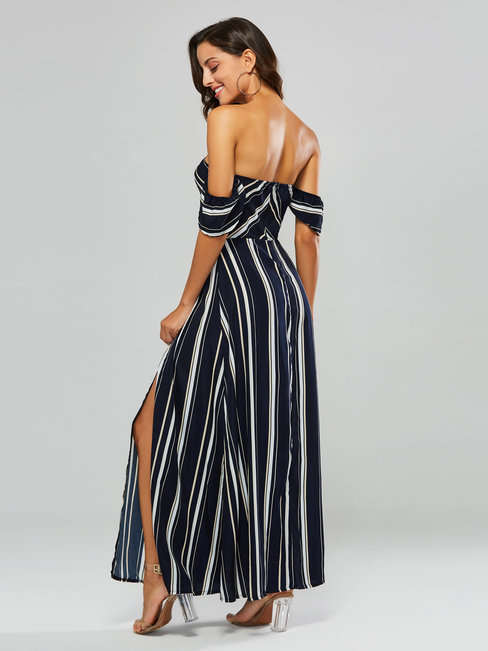 - Blue A-line Striped Cut Out Polyester Maxi Dresses (Style V200675)
