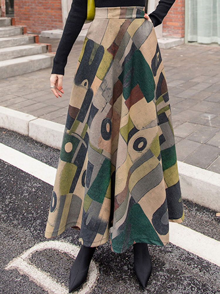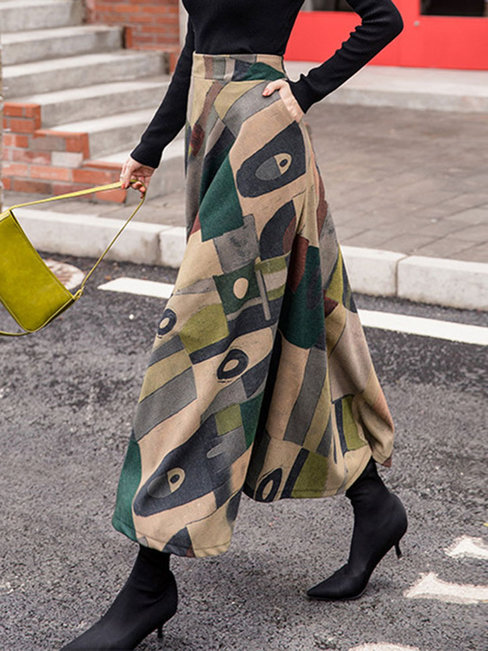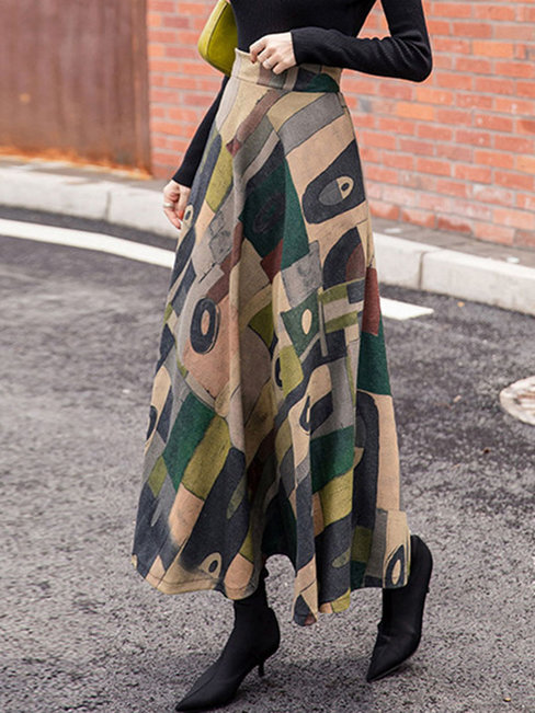 - Green Ankle Length A-line Date Night Polyester Color Block Skirt (Style V201901)