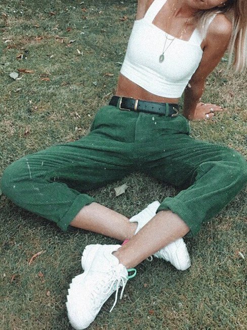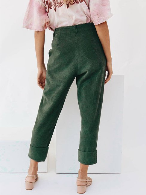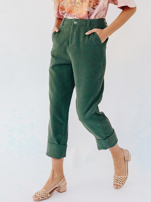Green Ankle Length Elegant Button Polyester Plain Pants (Style V102355)
