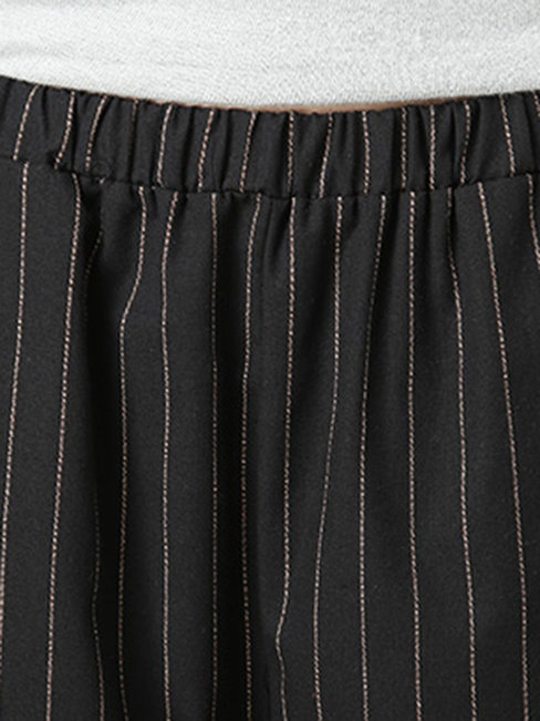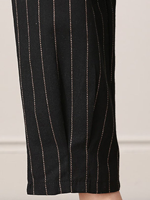 - Black Ankle Length Elegant Pattern Linen Striped Pants (Style V102380)