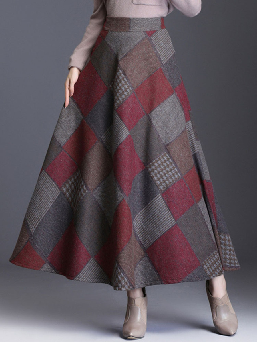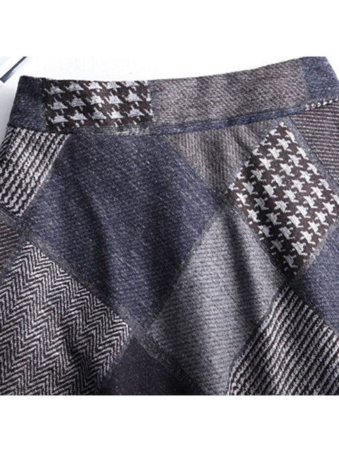 4. Knee Length A-line Elegant Pattern Plaid Skirt (Style V201896)