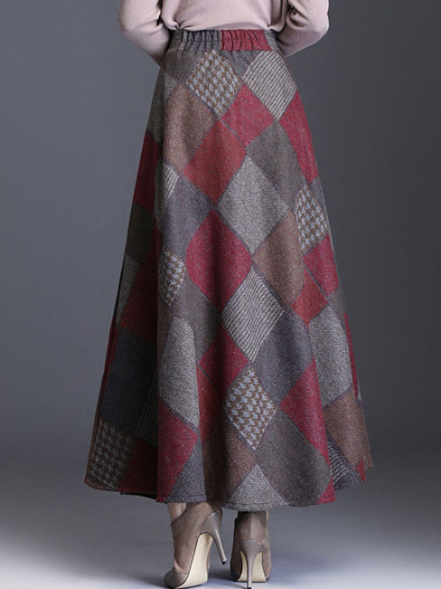 5. Ankle Length A-line Slow Life Pattern Color Block Skirt (Style V201900)