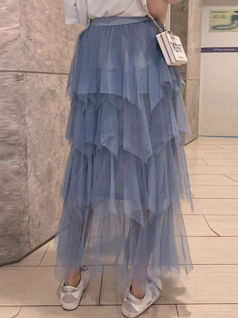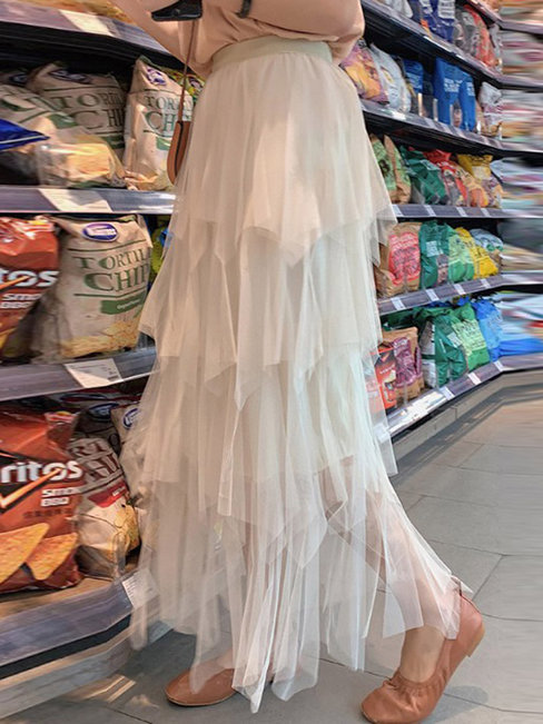 - Light Apricot Ankle Length Elegant Ruffle Polyester Plain Skirt (Style V201880)