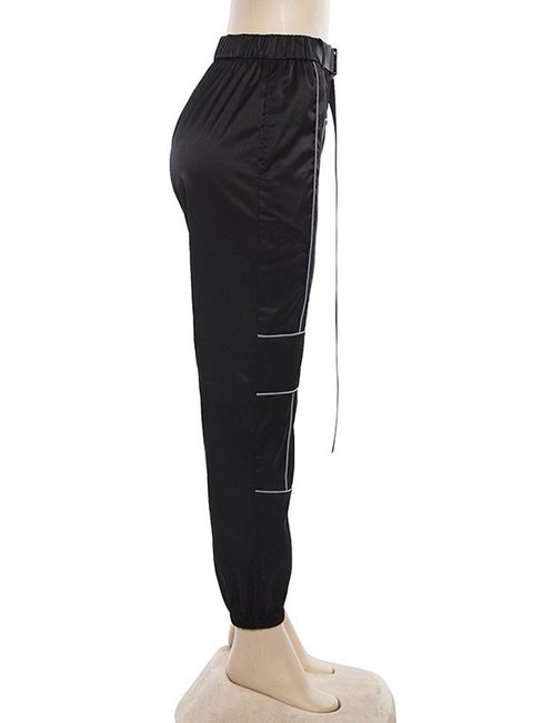 Black Ankle Length Fashion Patchwork Polyester Plain Pants (Style V102339)