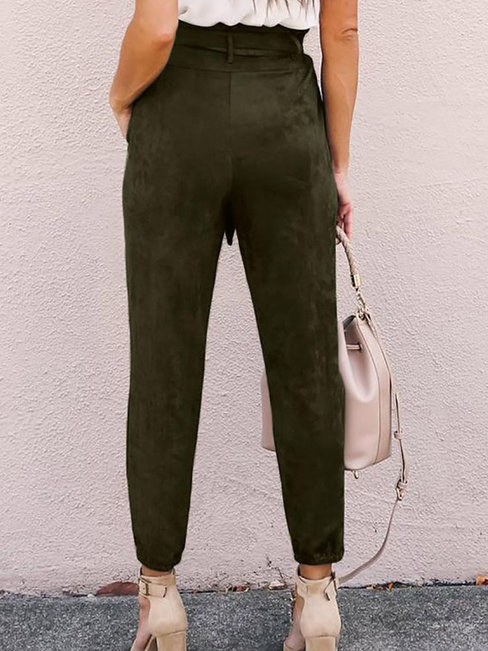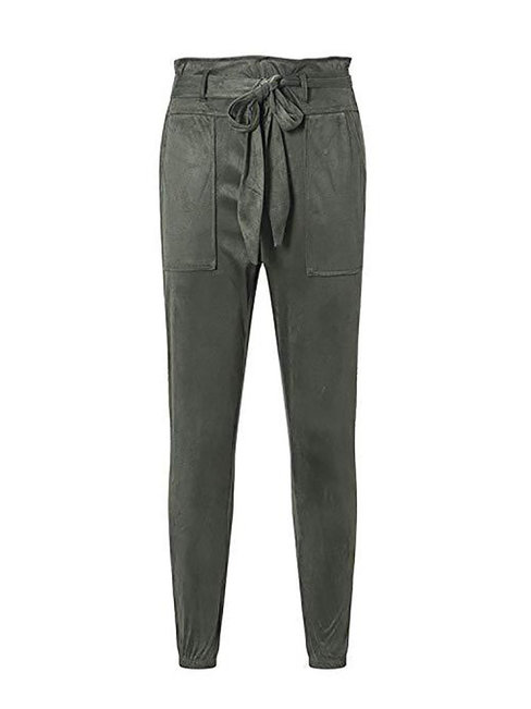 Green Ankle Length Loose Belt Polyester Plain Pants (Style V102220)