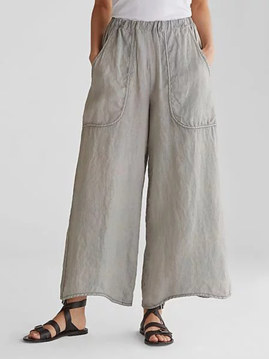 Light Gray Ankle Length Loose Date Night Pockets Plain Pants (Style V102212)