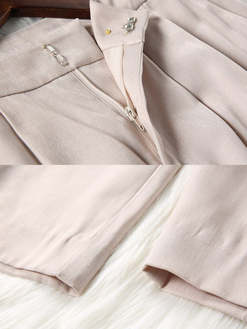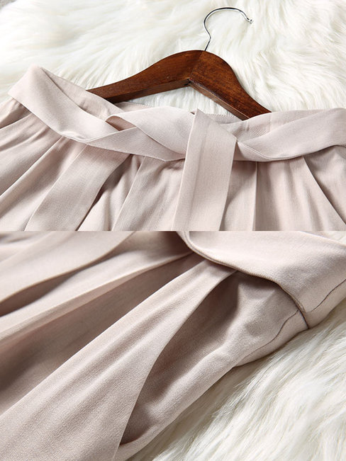 Khaki Ankle Length Loose Elegant Belt Polyester Pants (Style V102275)