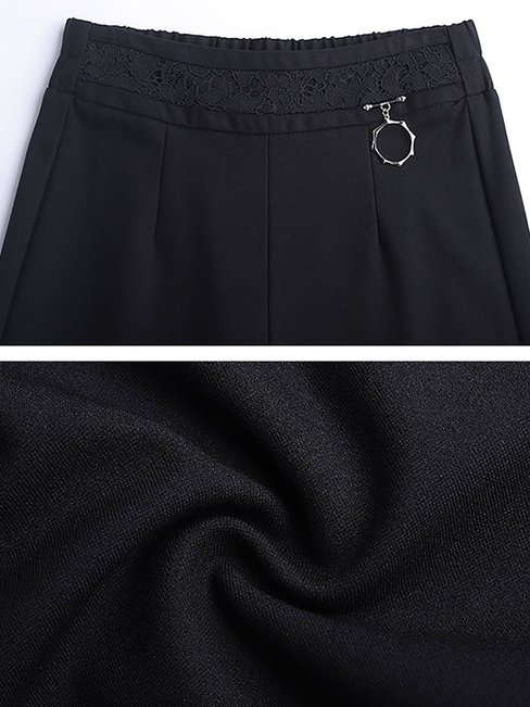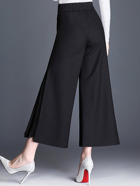 Black Ankle Length Loose Lace Polyester Plain Pants (Style V102297)