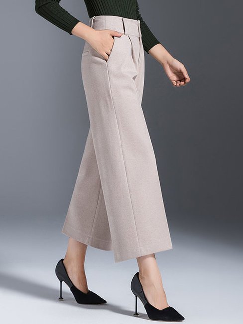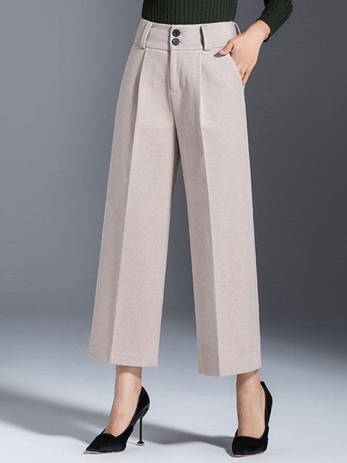 - Beige Ankle Length Loose Office Button Polyester Pants (Style V102232)