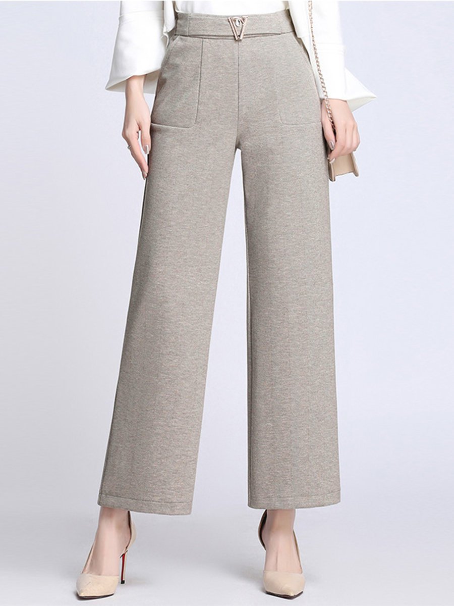 Apricot Ankle Length Loose Office Pockets Plain Pants (Style V102244)