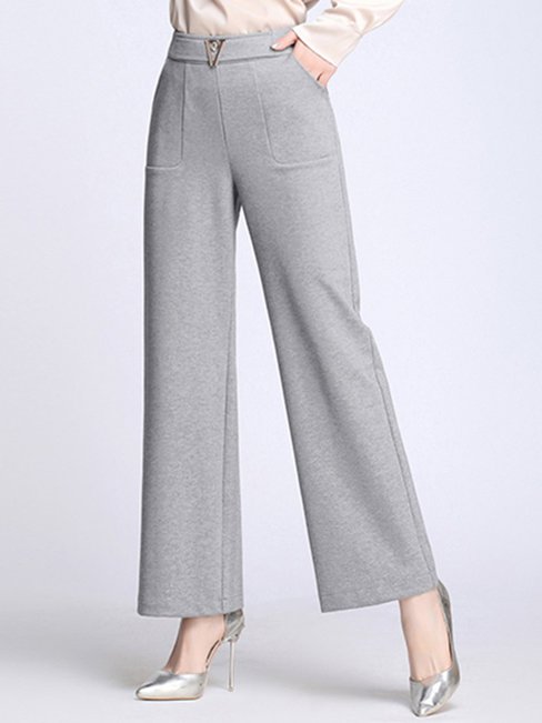 - Grey Ankle Length Loose Office Pockets Plain Pants (Style V102244)
