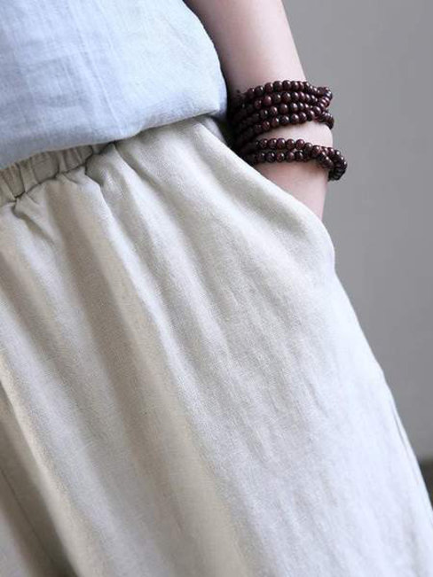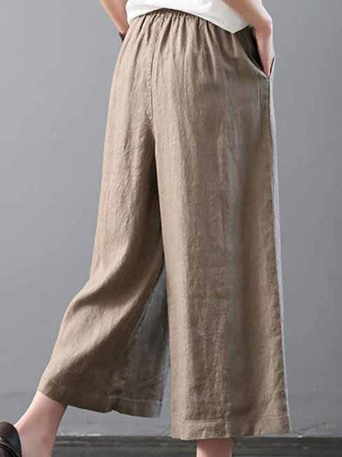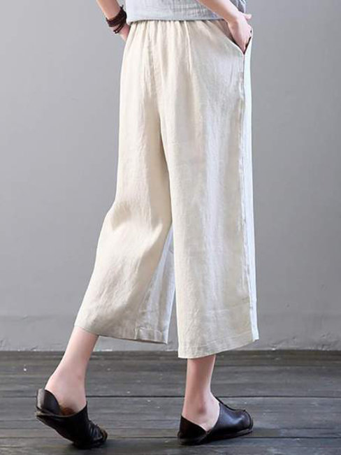 - Apricot Ankle Length Loose Slow Life Pockets Polyester Pants (Style V102417)