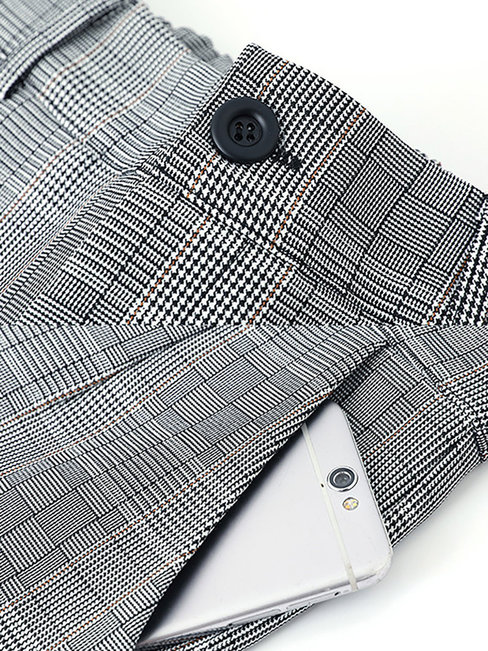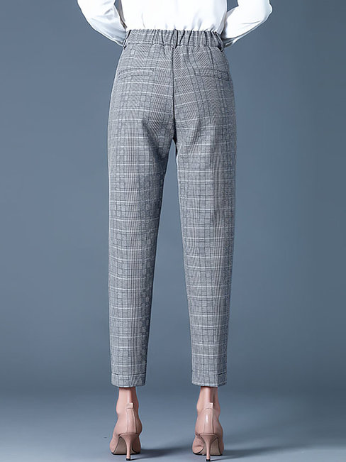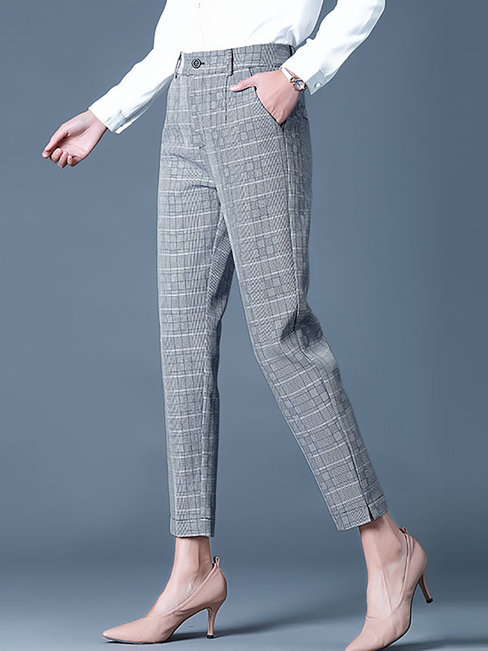 Grey Ankle Length Office Pattern Polyester Plaid Pants (Style V102237)
