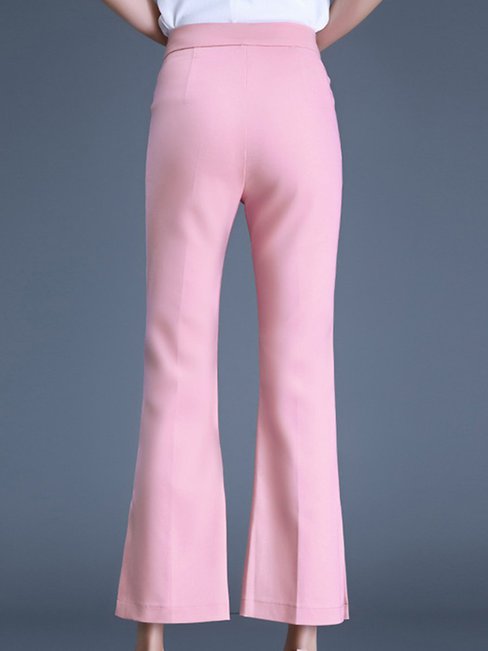 Pink Ankle Length Office Pockets Cotton Plain Pants (Style V102233)