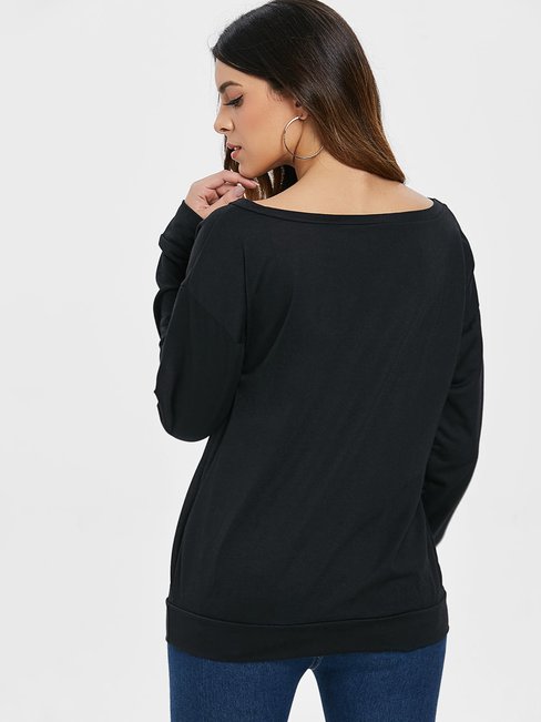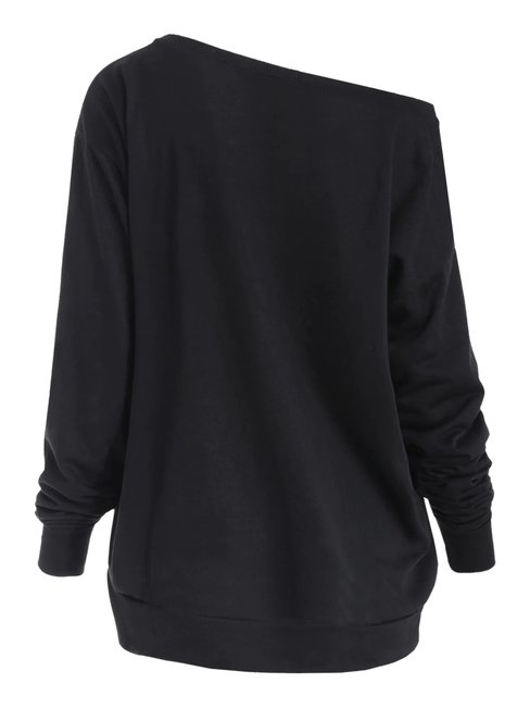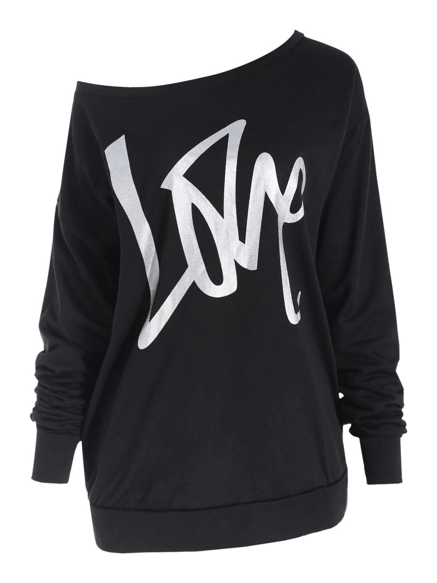 - Black Asymmetric Casual Letter Polyester Pattern Sweatshirts (Style V100565)