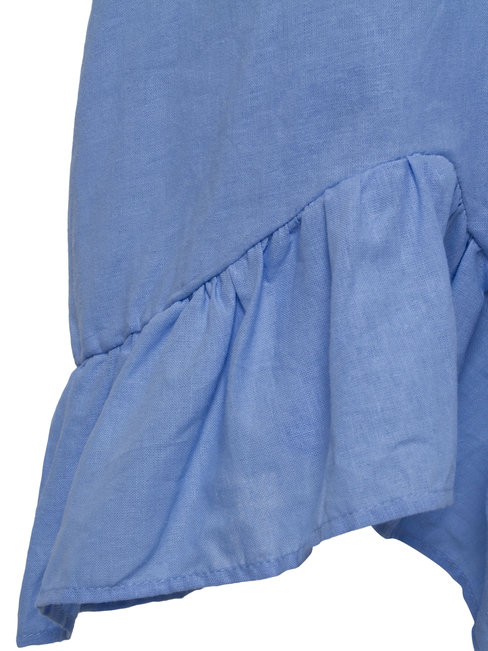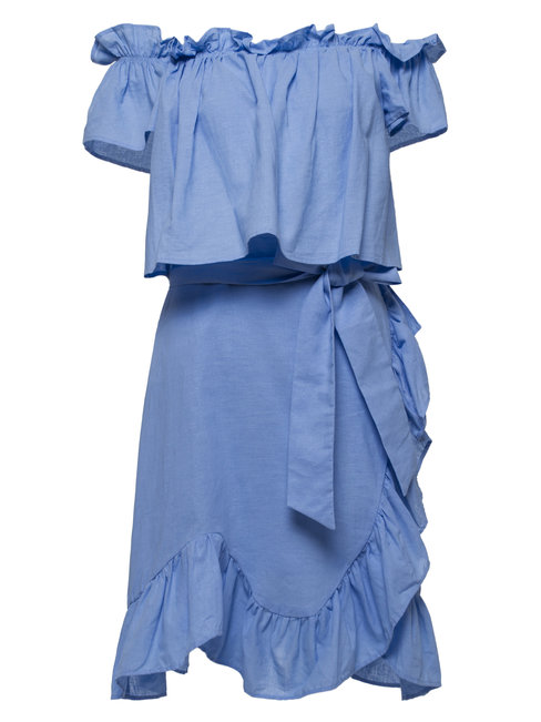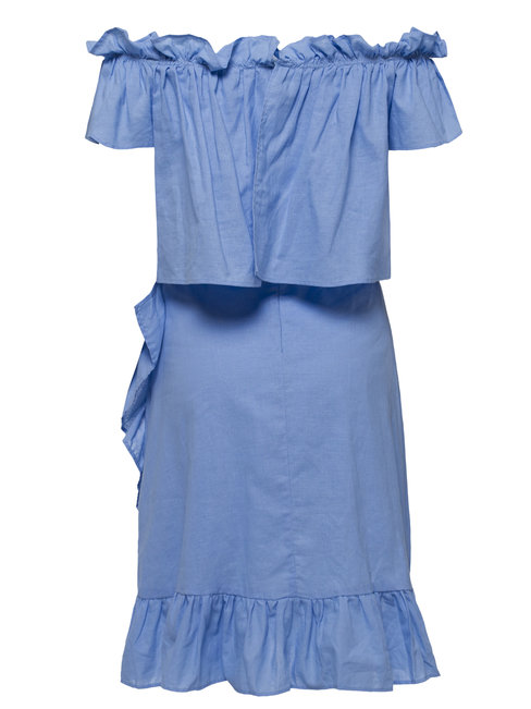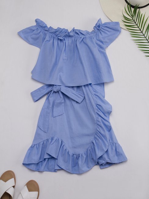 - Blue Asymmetrical Off The Shoulder Plain Backless Cotton Knee Length Dresses (Style V200152)