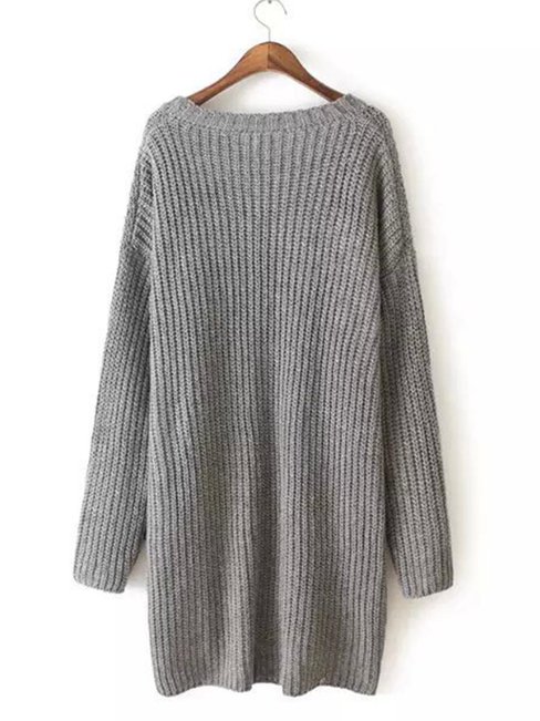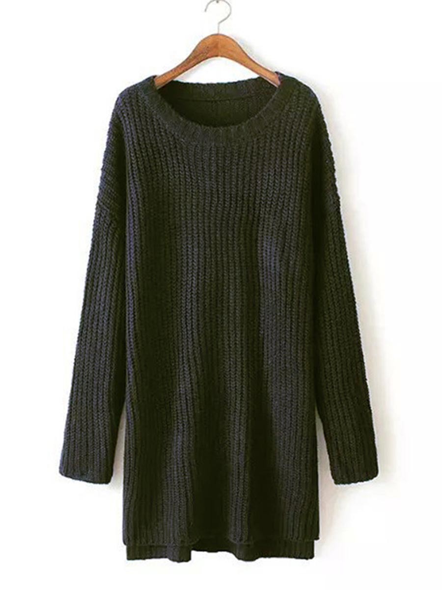 Black Asymmetrical Round Neck Plain Asymmetrical Acrylic Midi Dresses (Style V200289)