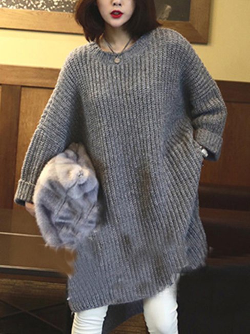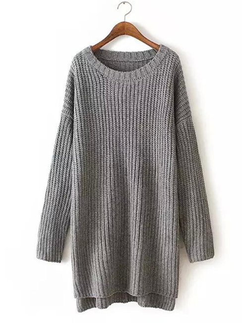 - Gray Asymmetrical Round Neck Plain Asymmetrical Acrylic Midi Dresses (Style V200289)