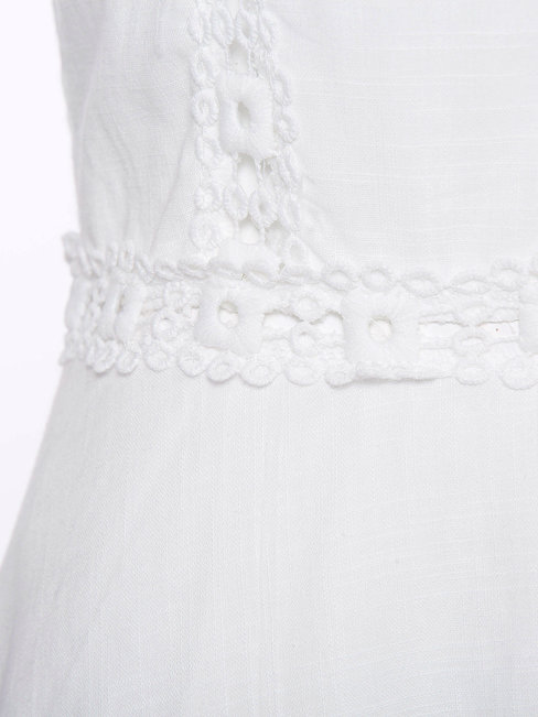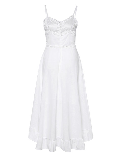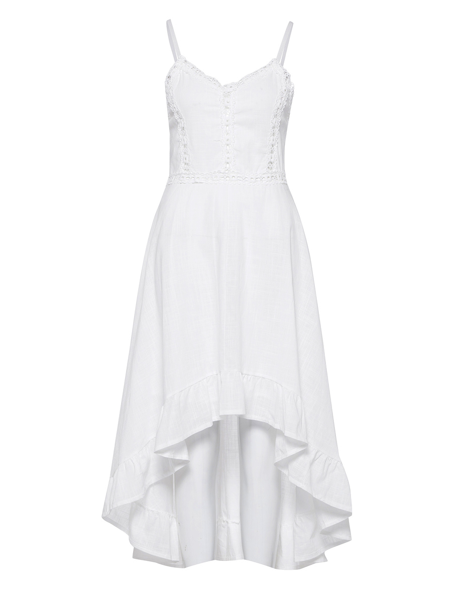 White Asymmetrical Spaghetti Strap Plain Backless Cotton Maxi Dresses (Style V200613)