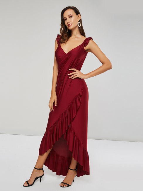 - Black Asymmetrical V-neck Plain Asymmetrical Maxi Dresses (Style V200503)