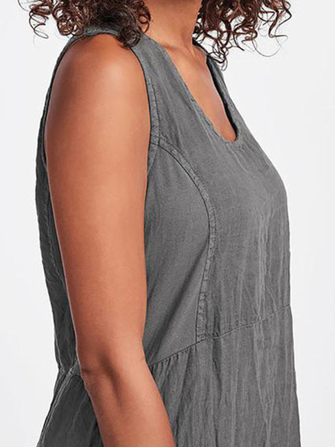 Grey Basic Tunic Round Neck Solid Color Polyester Casual Dresses (Style V100347)