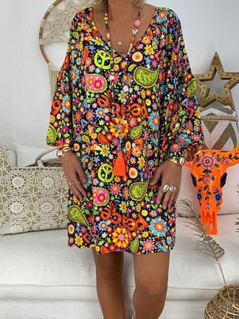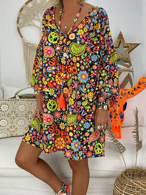 1. Western A-line Plain Patchwork Polyester Mini Dresses (Style V201450)