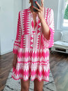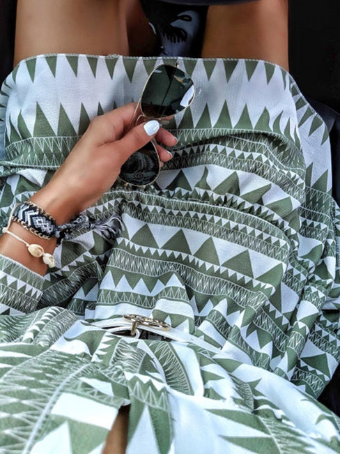 Green Beach Shift V-neck Pattern Chiffon Boho Dresses (Style V100228)