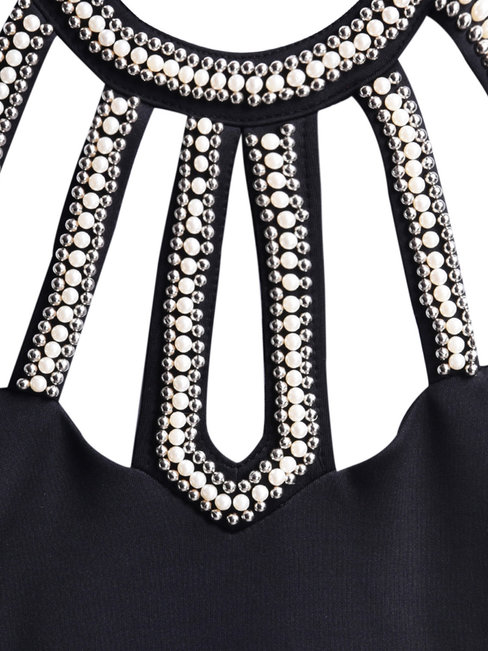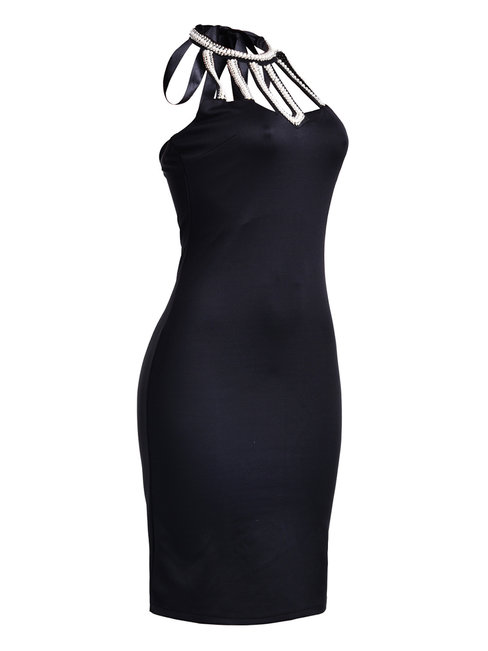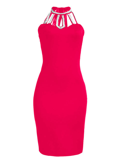 - Red Bodycon Halter Patchwork Knee Length Dresses (Style V200414)