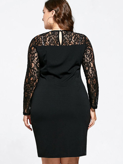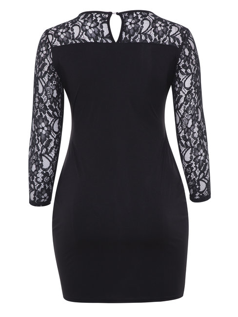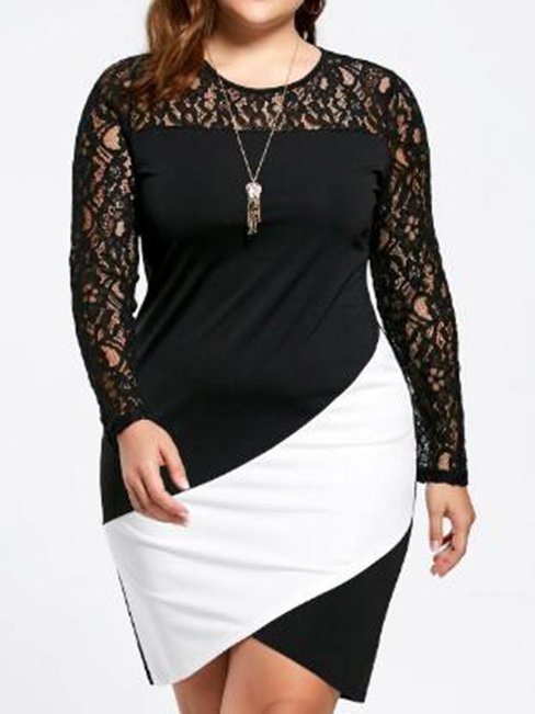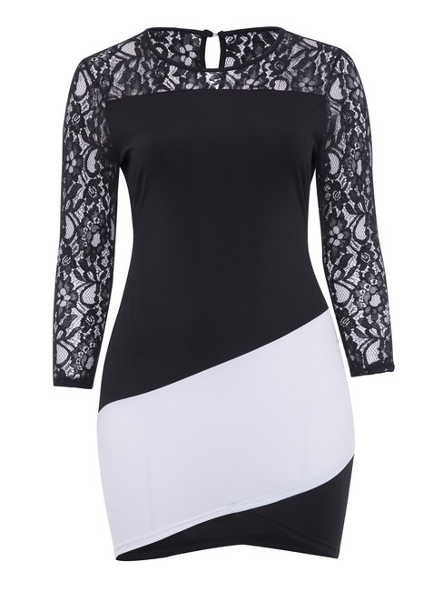 - Black Bodycon Round Neck Color Block Patchwork Bodycon Dresses (Style V200310)