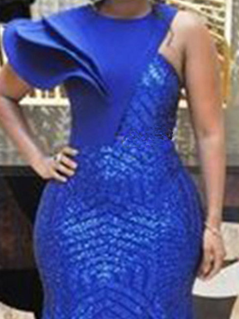 - Royal Blue Bodycon Round Neck Plain Cascading Ruffle Bodycon Dresses (Style V201247)