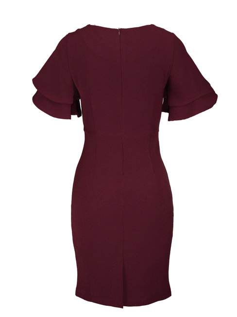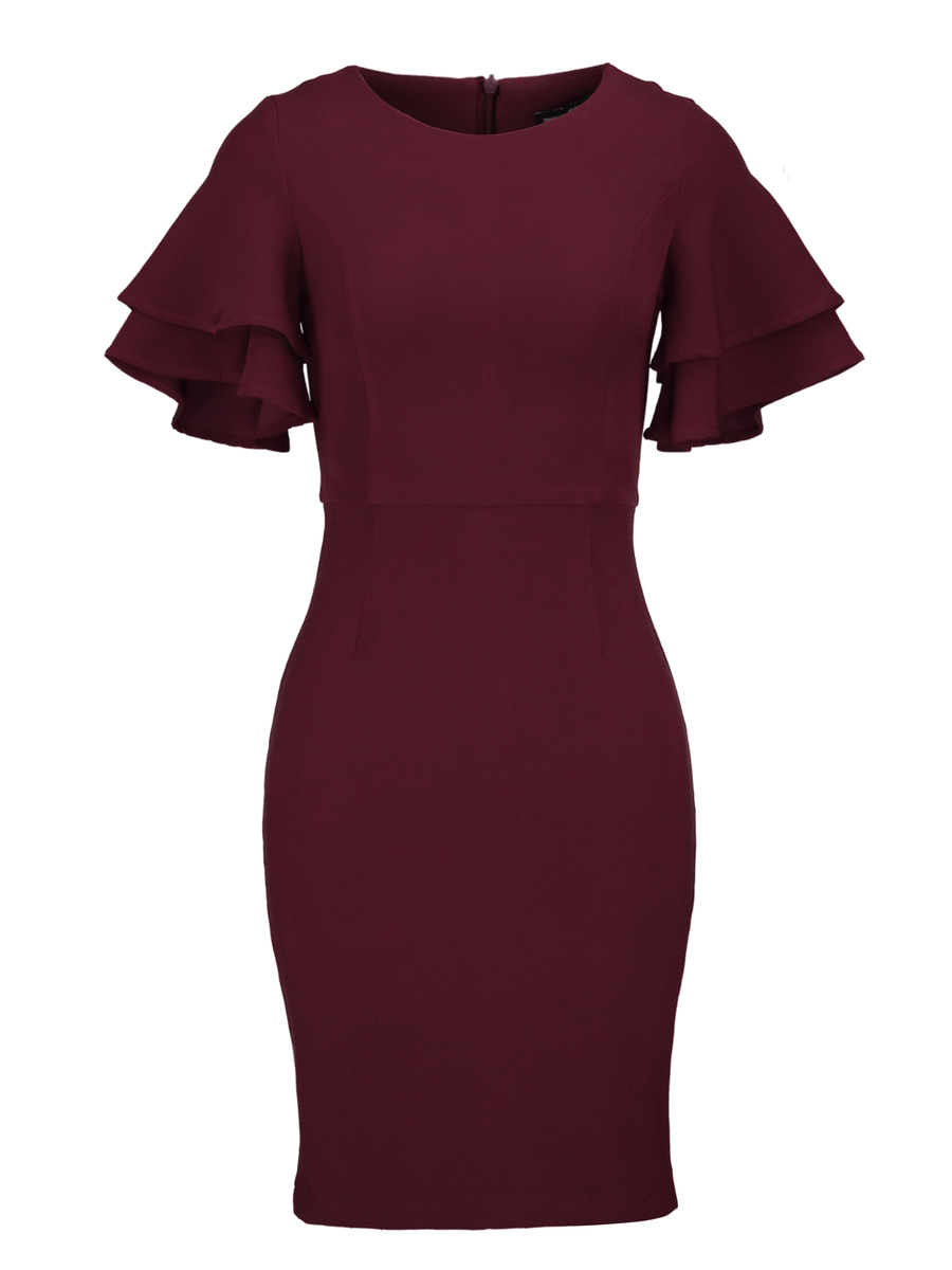 Date Red Bodycon Round Neck Plain Patchwork Bodycon Dresses (Style V200425)
