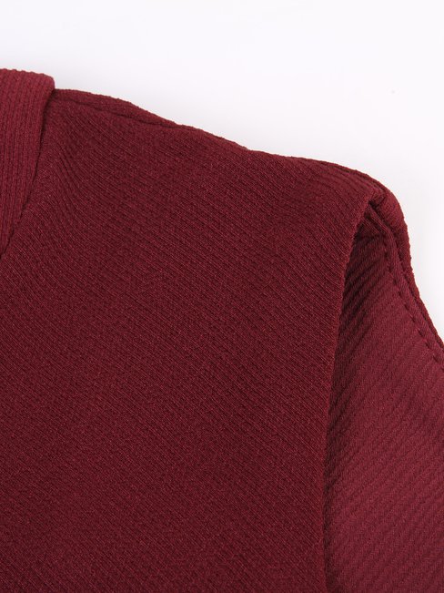 5. Office Shawl Collar Solid Color Button Cotton Blends Work Dresses (Style V201864)