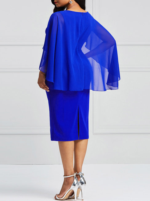 - Blue Bodycon Round Neck Plain Patchwork Bodycon Dresses (Style V200591)
