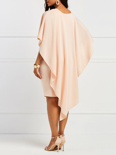 - Light Apricot Bodycon Round Neck Plain Patchwork Knee Length Dresses (Style V200584)
