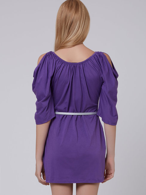 - Purple Bodycon Round Neck Plain Ruffle Polyester Bodycon Dresses (Style V200033)