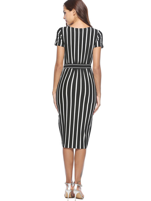 - Black Bodycon Round Neck Striped Bodycon Dresses (Style V200514)
