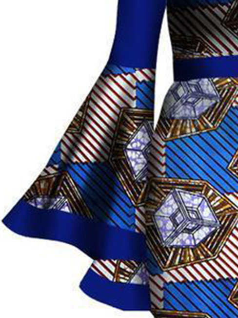 - Royal Blue Bodycon Round Neck Striped Print Knee Length Dresses (Style V200571)