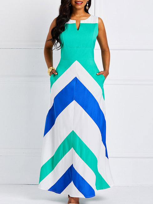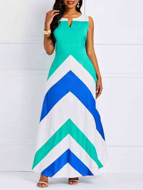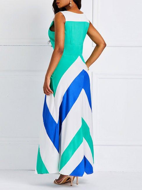 Green Casual A-line Color Block Patchwork Satin Casual Dresses (Style V201142)