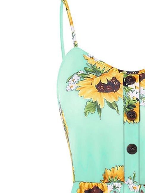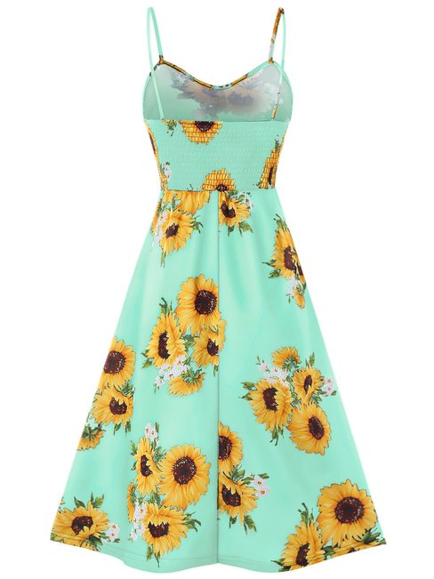 - Biscay Green Casual A-line Sweetheart Printed Pattern Casual Dresses (Style V100490)