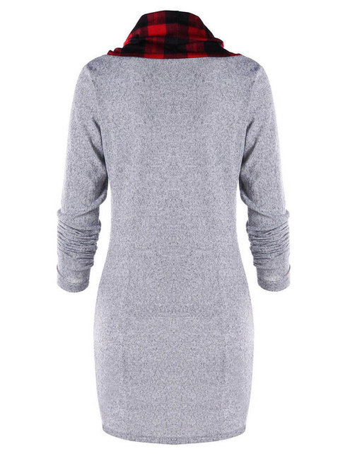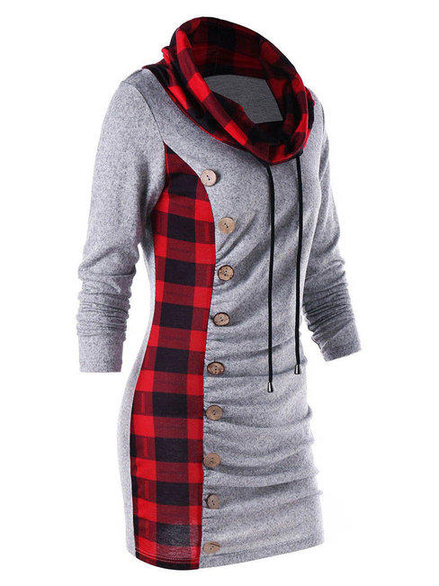 - Gray Casual Bodycon Heap Collar Plaid Patchwork Casual Dresses (Style V201132)