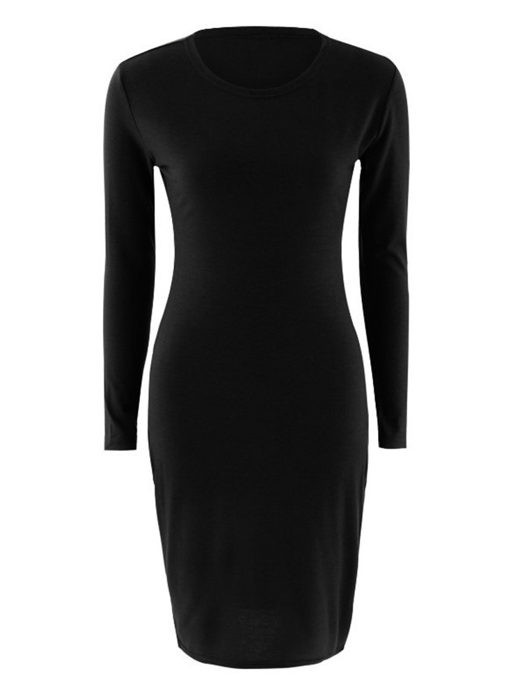 - Black Casual Bodycon Round Neck Plain Casual Dresses (Style V200789)