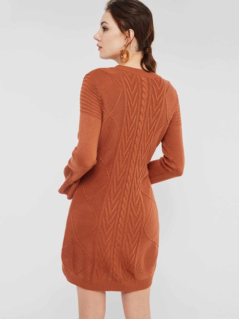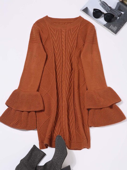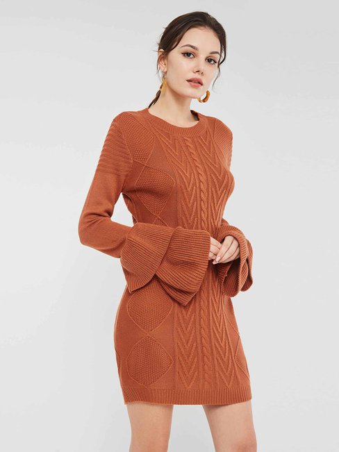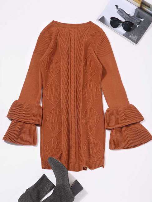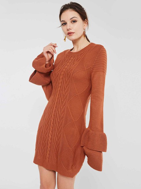 - Chocolate Casual Bodycon Round Neck Plain Ruffle Casual Dresses (Style V200885)