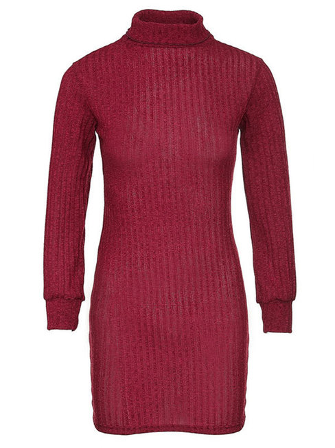 - Burgundy Casual Bodycon Turtleneck Plain Casual Dresses (Style V200830)