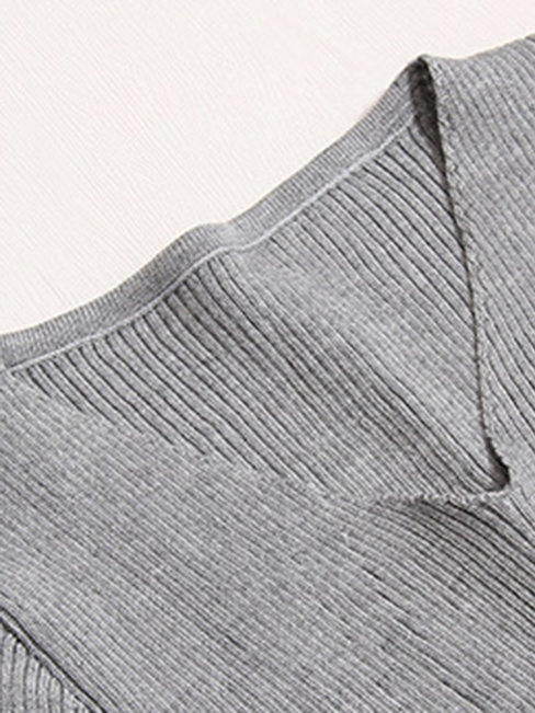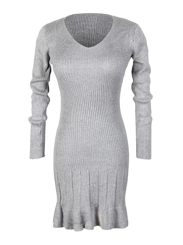 - Gray Casual Bodycon V-neck Plain Casual Dresses (Style V200794)