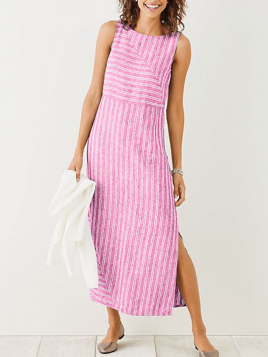 Pink Casual Shift Round Neck Cut Out Polyester Casual Dresses (Style V100431)
