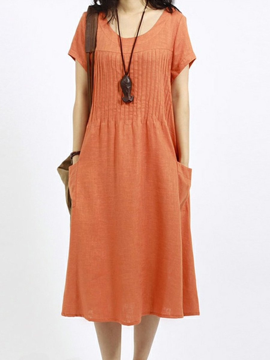 Category: Casual Dresses,Linen Dresses,Midi Dresses
