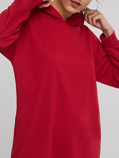 Burgundy Casual Straight Hooded Plain Casual Dresses (Style V200975)